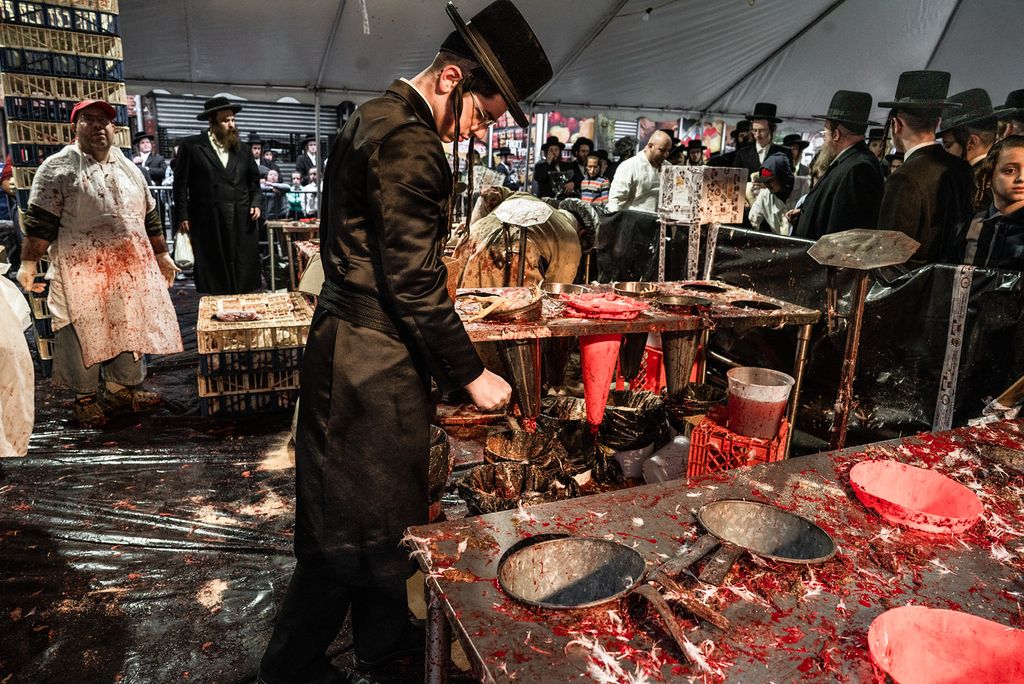 Juste après le rituel, le poulet est emmené chez le sacrificateur rituel (le Chohet) pour être égorgé selon les règles de l'abattage rituel juif.