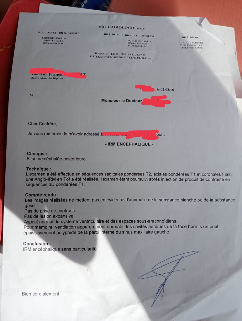 Il me faudrait les resultats des imageries cerebrales et pas cervicales.