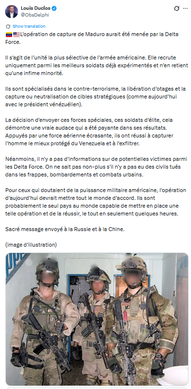 nous rencontrons des problèmes de type remplacement/submersion, on voit que nos Etats, en tout cas les US, ont encore les moyens de faire des trucs stylés (chadesques) avec cet exemple : si tu captures Maduro sans rien faire pour remigrer les scammeurs d'Ohio qui vivent sur le dos de ta population fondatrice c'est du foutage de gueule