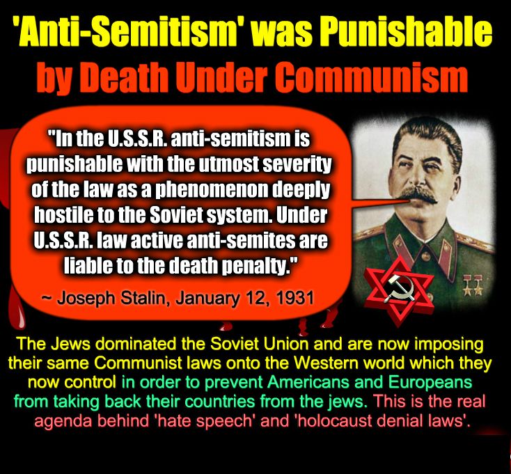 Under U.S.S.R. law active anti-semites are liable to the death penalty.