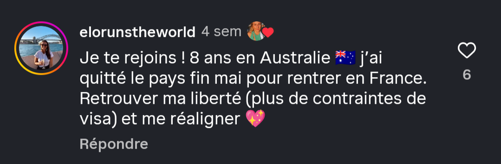 Quitté un pays comme l'Australie pour un trou un rat, oui oui c'est par choix..Surement
