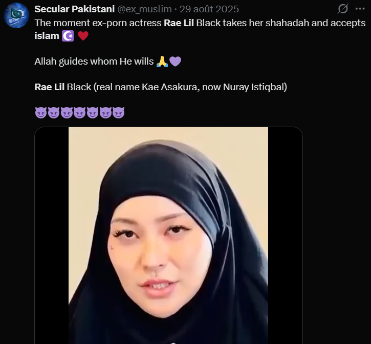 l'islam a recyclé Rae Lil Black et même Purehumansoul la française qui avait bz avec sa daronne sur onlyfans, et les musulmans sont d'ailleurs toujours très ravi quand des choses pareil arrivent ça me termine