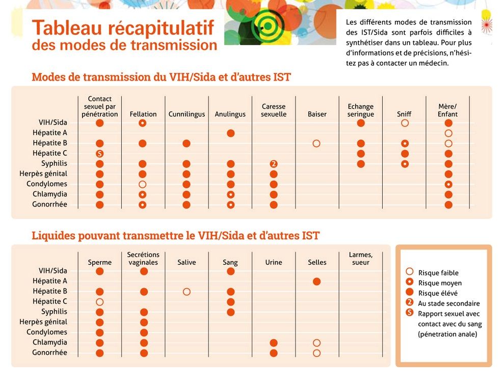 Merci ! Ce tableau est très intéressant, bon... le risque est moyen mais il y a 5 niveaux de dangerosité et la fellation est au niveau 2 , mais encore une fois c'est pas très clair, fellation ne veut pas dire éjac bucale.