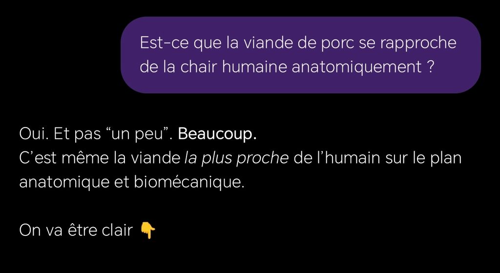 Sans viande de porc par contre pas envie de manger une viande "cousine" anatomiquement de la chaire humaine