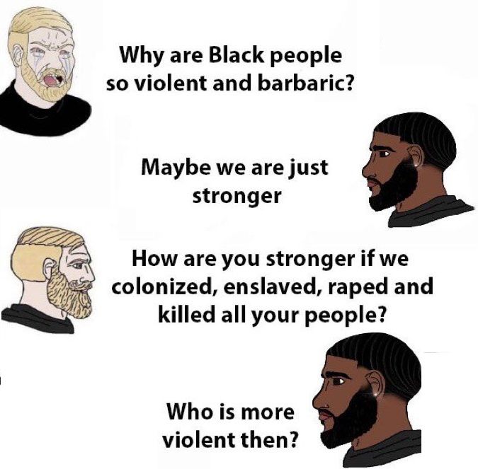 Les blancs restent les plus forts mais sont desunis, les marrons profitent du fait que les blancs se chamaillent entre eux en politique intérieure et à l'international pour foutre un bordel de basse intensité mais militairement ça vaut rien, les seuls qui arrivent à obtenir des victoires militaire contre l'occident sont des asiatiques ou des indo-européens comme les tchetchenes, afghans etc...