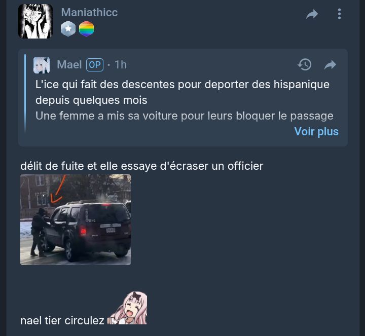 Tu peux haïr la police autant que tu veux, à la fin de la journée ça reste des humains qui ont le droit de rentrer chez eux en vie et en bonne santé le soir, malgré tout leur défauts.