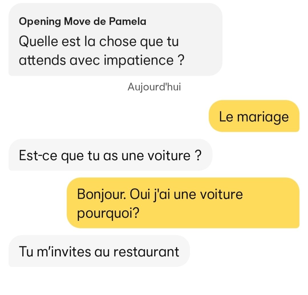 Bah oui c’est ça maintenant elles veulent qu’un gars viennent la chercher devant chez elle en Audi puis le resto ultra chic et te jeter à la fin