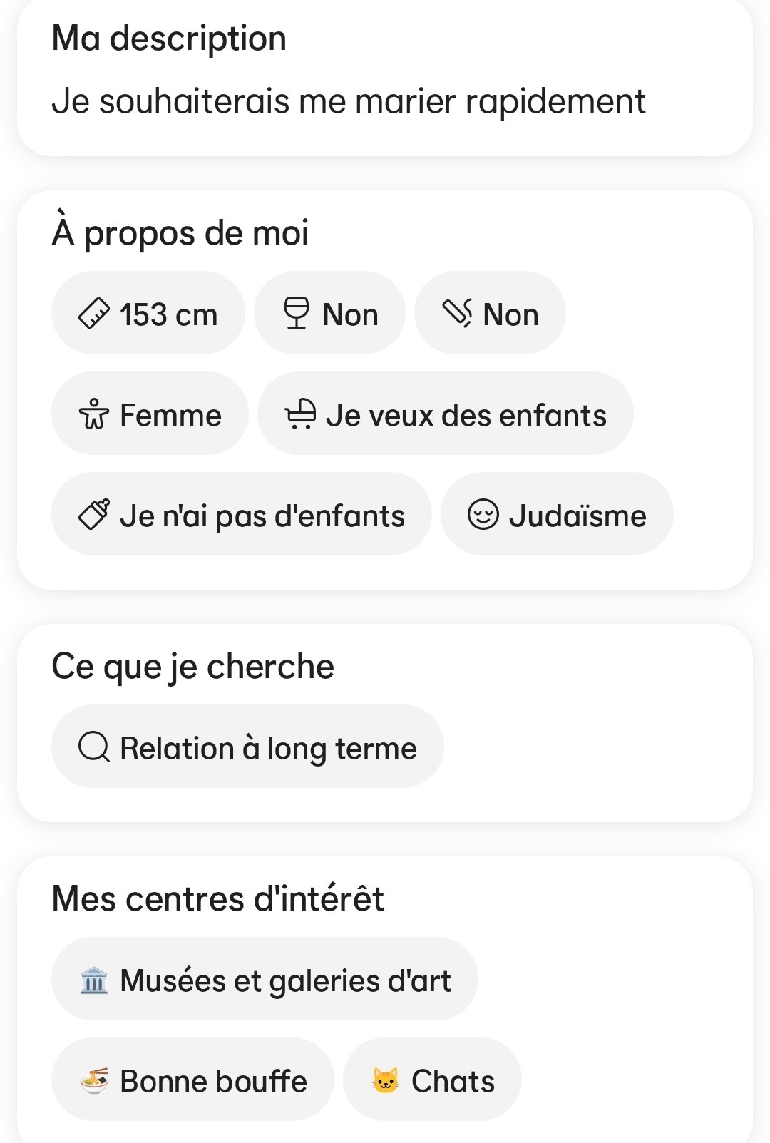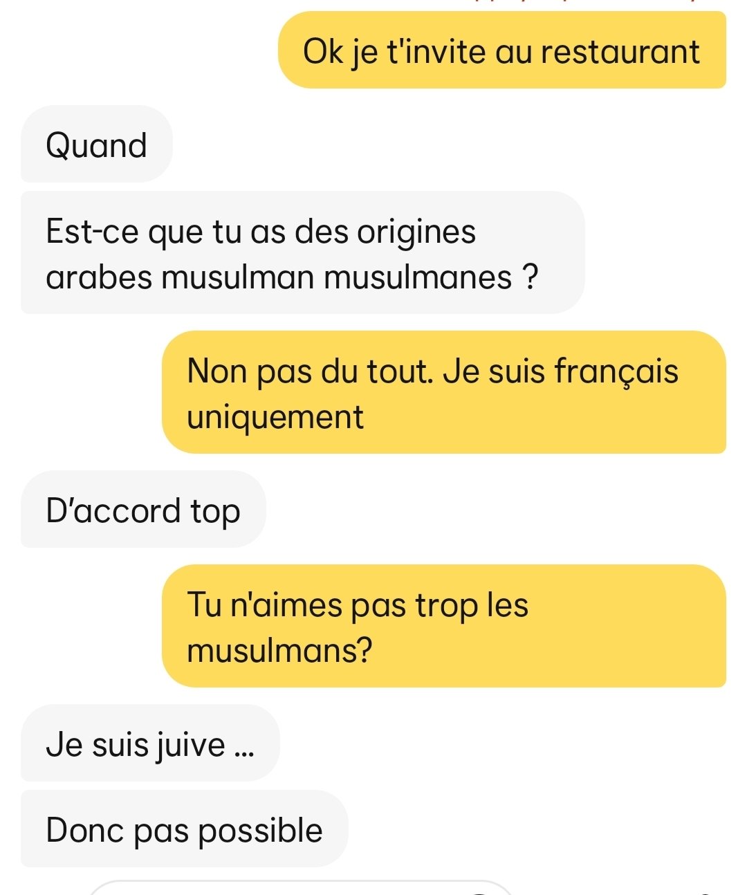 En plus elle à marqué "bonne bouffe" dans ses centres d'interets. Si ça se trouve c'est juste une petite grosse qui cherche à bouffer à l'œil et une fois que l'OP lui à payé le repas, il ne lui fracture même pas le bassin