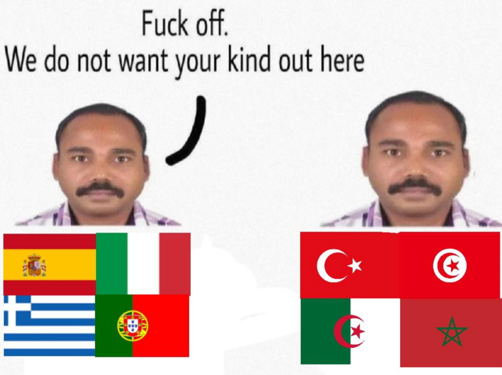 aucune difference entre les arabes, les espagnols, les portugais, les grecs et les italiens. a mes yeux ce sont tous des maghrebins. je dis pas que j'y vois de mal mais que c'est quand meme la situation dans laquelle ils se retrouvent