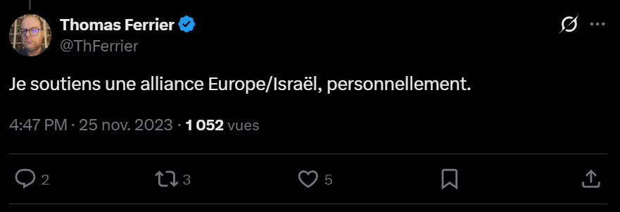 Israël ou pas ils sont toujours en Europe à fomenter des escroqueries à la taxe carbone et leur subversion morale habituelle, donc je vois pas ce que ça changerait