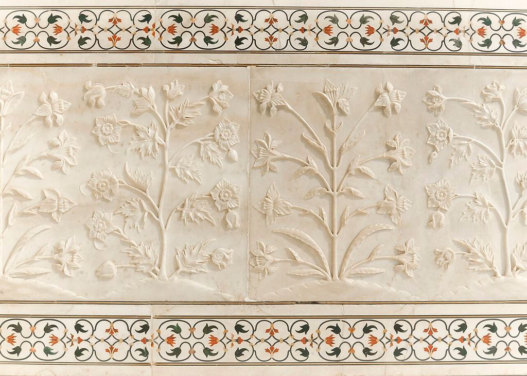 C'est un des plus beaux monuments sur Terre, couvert d'ornements d'une finesse exquise à l'intérieur, érigé en souvenir de la mort de l'impératrice Mumtaz Mahal par le Shah Jahan, empereur moghol, au moment le plus prospère et raffiné de cet empire.