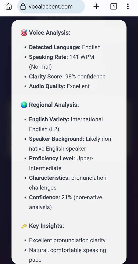j'ai fait le test en français et il me dit que j'ai un accent anglais international
