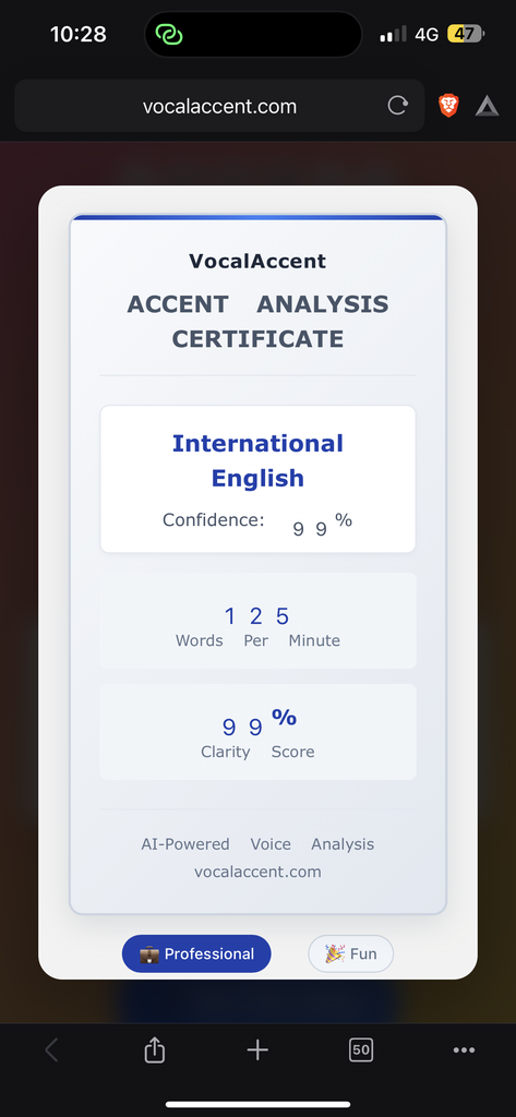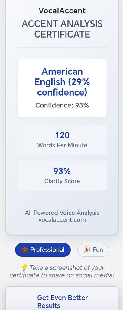 j'ai fait le test en français et il me dit que j'ai un accent anglais international