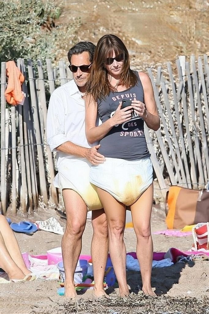 Image a la plage, le couple Sarkozy en profite sans se prendre la tête a trouver des chiottes