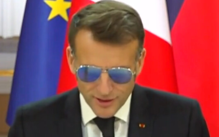 MACRON obligé de porter ses lunettes de soleil :rire