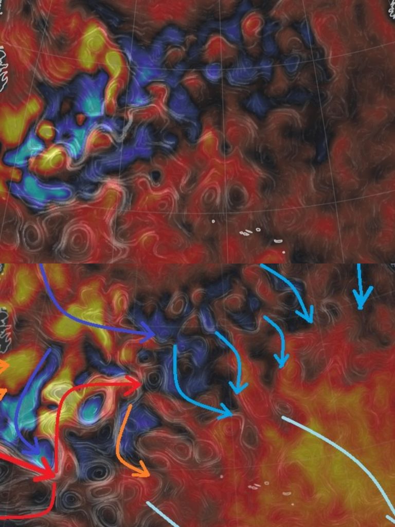 Ces carte montres le gulfs stream avant et maintenant avec les anomalies chaude en jaune et froide en bleu.