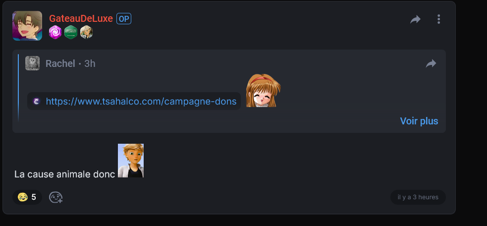 La force de Onche, et des jvc-like en général, est la diversité de ses membres, ce qui permet de discuter de tout de manière plus intelligente que sur Twitter par exemple. Si vous voulez transformer Onche en r/France d'extrême-droite avec une seule façon de penser sinon c'est le ban, faudra pas vous plaindre derrière d'être vous-même ban pour un motif que vous jugez stupide et que de plus en plus de gens voudront se casser
