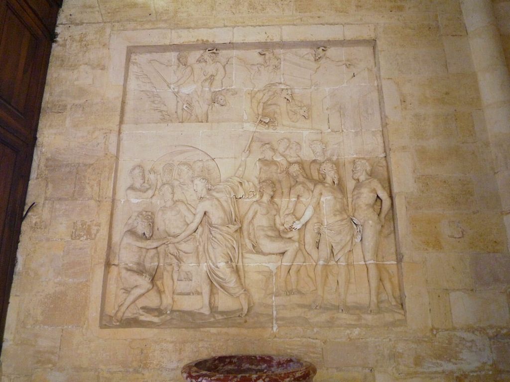 Du coup je vais dire que j'ai vu de très jolis bas-reliefs dans la cathédrale Saint-André de Bordeaux sur le mur du fond (occidental) d'environ 1540, malheureusement pas très bien entretenue.