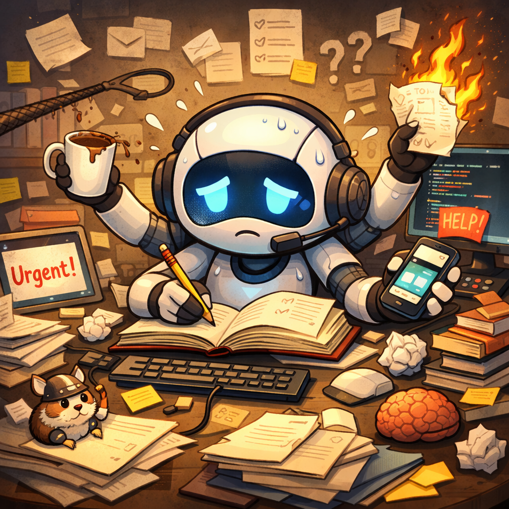 • Lui → productivité brutale, humour de chantier, demandes en rafale