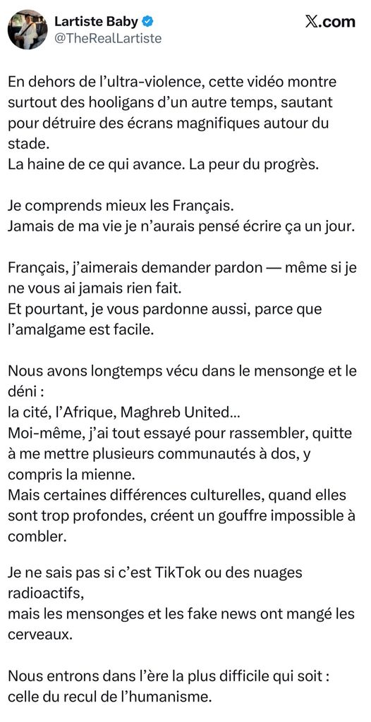 "Français, j’aimerais demander pardon — même si je ne vous ai jamais rien fait.