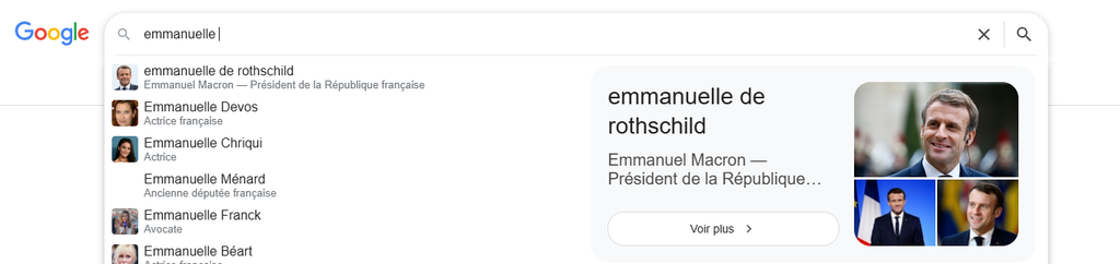 Quand on cherche sur Google, on trouve étonnamment peu d'informations sur cette théorie mais quand on tape "Emmanuelle de Rothschild", voyez ce que Google me propose