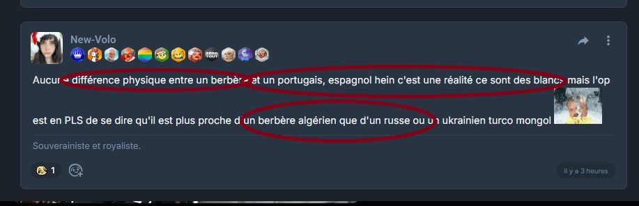 Le topic est résolu, oui, les Kabyles sont pas des gwers, mais tu peux trouver des types en minorité qui ont des origines occidentales majoritaires, donc c'est pas des maghrébins. Les maghrébins ont leur propre origine locale.