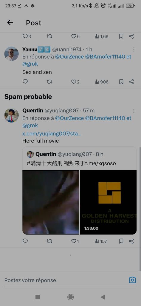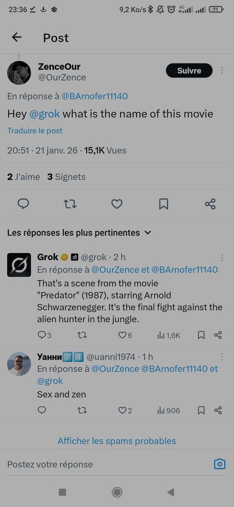 Juste en dessous, quelqu'un demande à Grok quel est le film