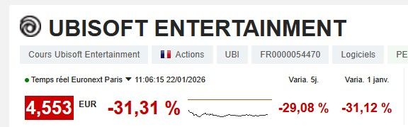 Et ya des khey sur le forum finance qui conseillaient d'acheter Ubisoft parce que ça allait pas tomber plus bas