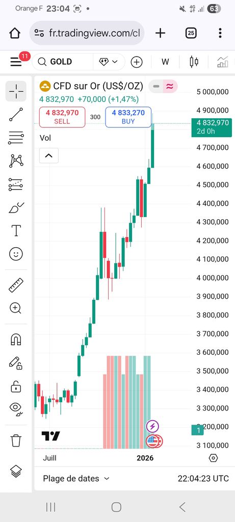 pour moi l’or est parti to the moon... la il est à 4600 $ le once... je le vois fin d’année a 10000 dollars voir plus.... ca y’est les " Brics " en ont marre de l’occident ( malhonnête). L’occident qui s'amuse à imprimer des billets magique ( euro et dollar magique garanti contre rien ). L’occident qui s’amuse à confisquer les avoir russes . L’occident qui voulait imposer son mode de vie au monde ( écologie et wokisme , lgbt , etx..etc...).... le monde pète un câble....