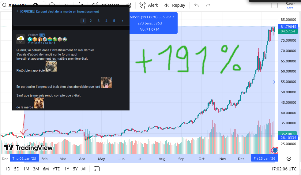 Tout le monde avait prévenu que le cours de l'argent était manipulé et qu'il y avait plus d'argent papier que d'argent physique, que la production n'arrivait pas à satisfaire la demande, qu'il y avait une pénurie etc... Mais cet être d'argile a craché sur la plus grosse opportunité du siècle