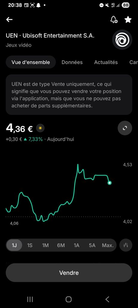 Ubisoft a pris 8% aujourd'hui, t'aurais mis 10000 tu gagnais 800 balles en une seule journée mais tu veux pas écouter les bons conseils