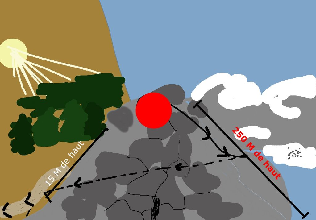 on sent qu'il fait froid, au début c'est un peu gris, mais c'est surtout un air d'hiver avec les montagnes,à ma gauche le soleil se couche avec l'automne mais le reste c'est l'hiver,mais quand on redescend ça passe totalement à l'automne. Un sentier pour redescendre est donc,par le gauche ou je suis et ....bon