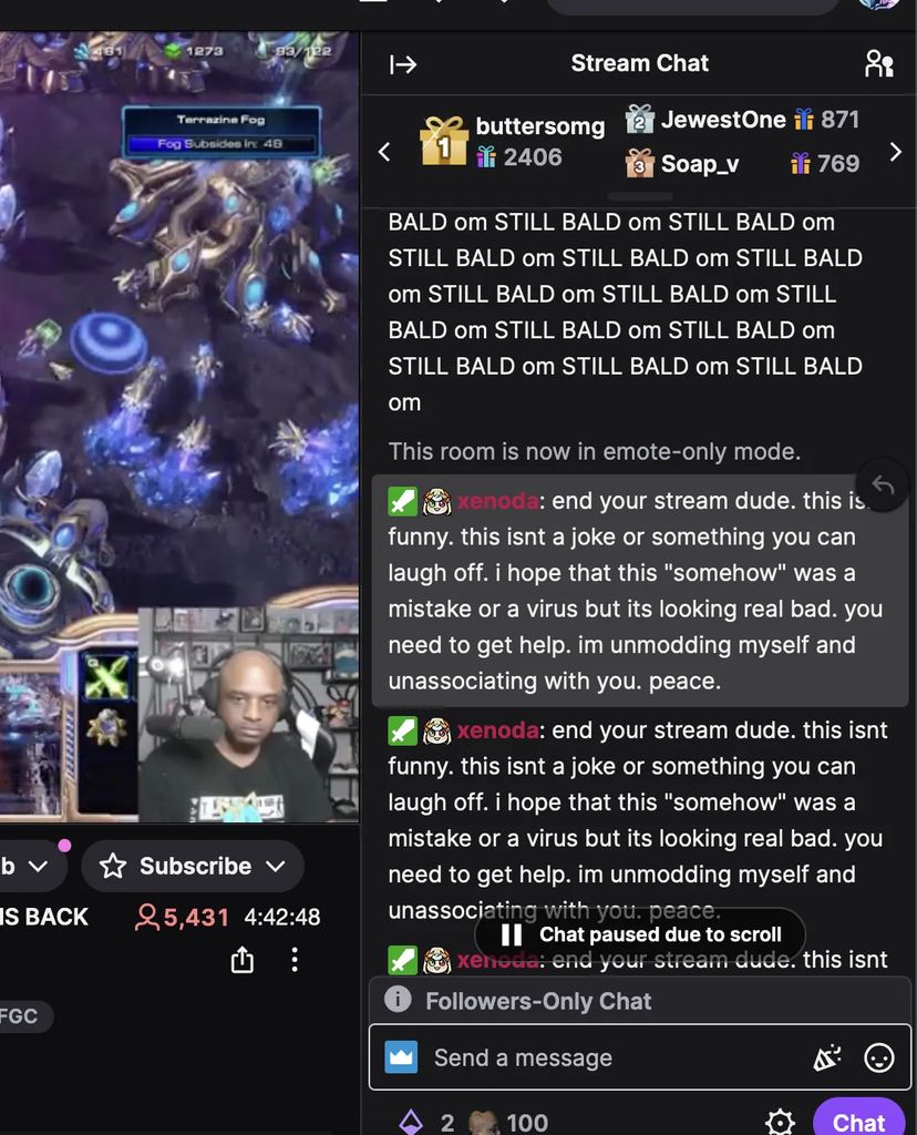 Directectement après l'incident, plusieurs modérateurs droppent leur rôle de modérateur sur le champ, débloquent le chat (qui était en sub only et emote only), et ça part en anarchie totale. Le channel se remplit de messages de dégoût, d'insultes, de spams "pedophile" partout, impossible à modérer. Le clip est capturé en live et posté sur LSF dans la minute, ça fait des millions de vues en quelques heures.