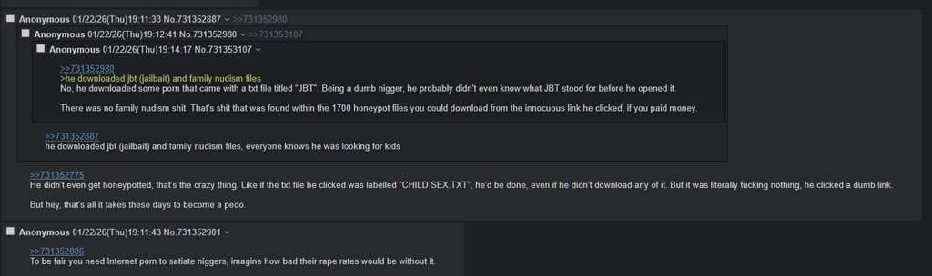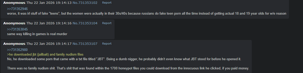 même sur LivestreamFail, qui censure extrêmement rarement ou ils laissent passer des trucs hardcore, les modérateurs ont été obligés de censurer la partie du bloc-notes dans les images et les reposts, parce que les noms de fichiers étaient trop explicites et trop graves légalement.