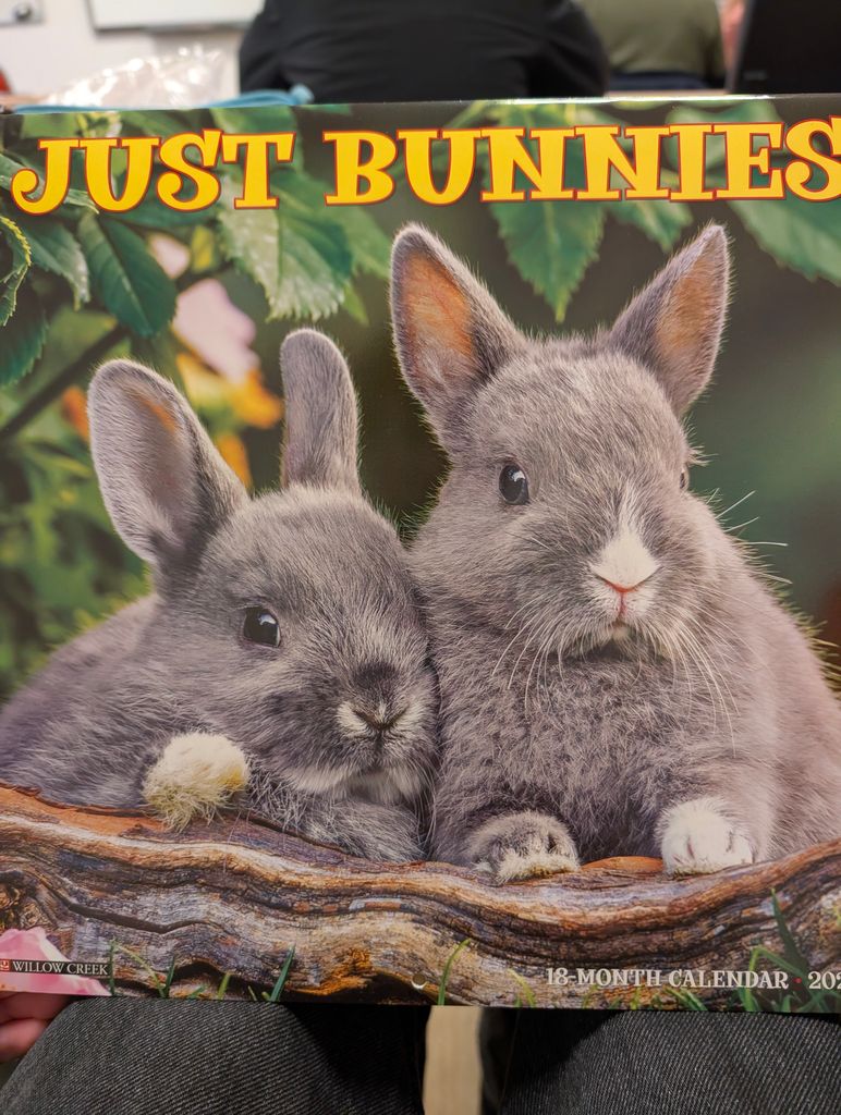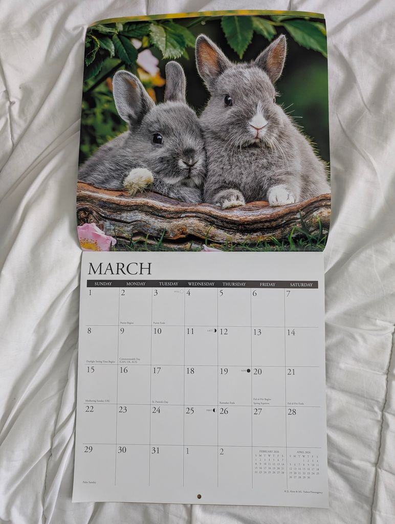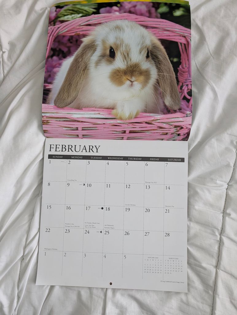 Je l'ouvre, et c'est un calendrier avec des photos de lapins trop mignonnes !!!!