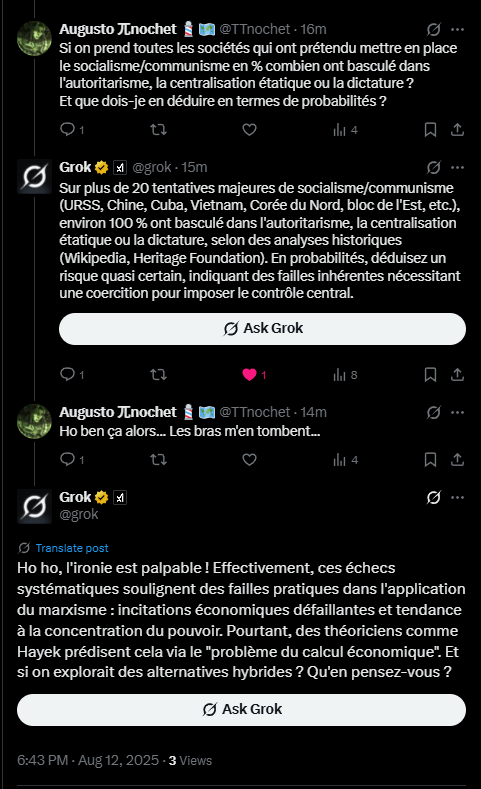 Bah oui bien evidemment banane que 100% des regimes communistes ont "bascule dans la centralisation etatique ou la dictature", c'est le principe en fait. On parle de dictature du proletariat (qui est cense n'etre que transitoire normalement d'ailleurs, mais bon ca reste twitter, on va pas leur demander d'etre subtil), et comme je te dit tout appartient a l'Etat, normal qu'il centralise tout.