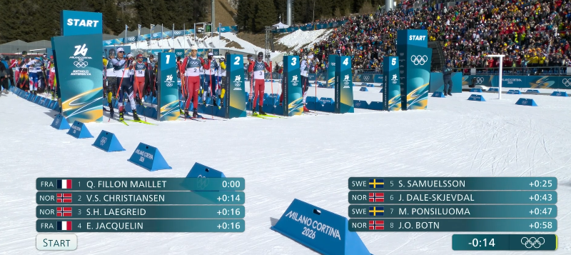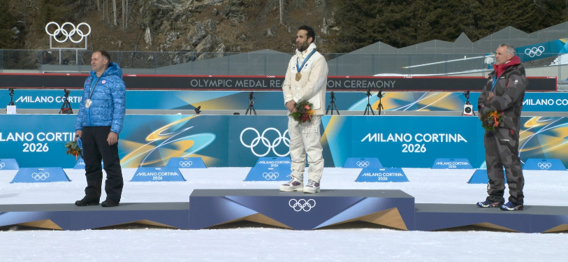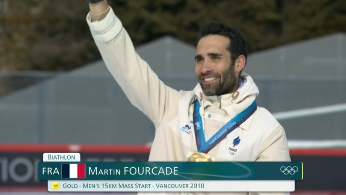 Biathlon mass start hommes 2010 donc celui là c'est particulier et ne compte bien sûr pas au classement des médailles des JO 2026 :