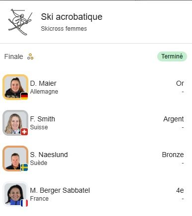 Perso si la française ne fait pas or ( et c'est très peu probable ) j'espère voir Fanny Smith en or.