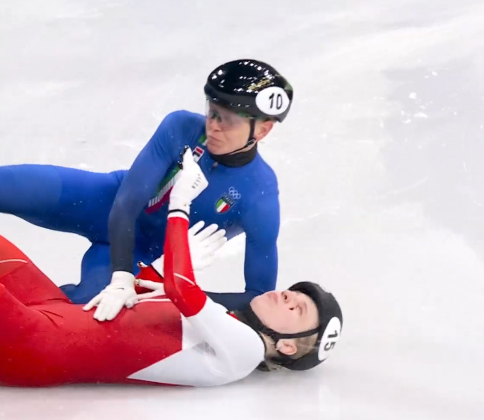 Beau sport le short track mais dangereux.