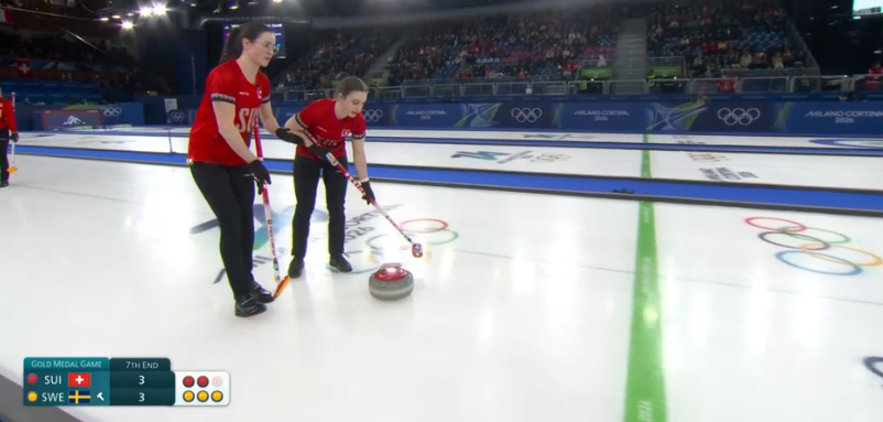 Revenons au curling. Les suédoises ont l'avantage actuellement face aux suissesses lors de cette finale.