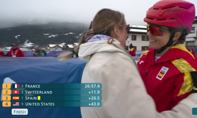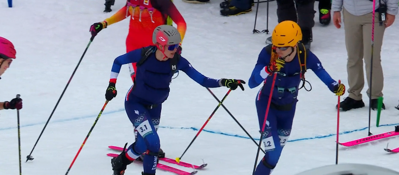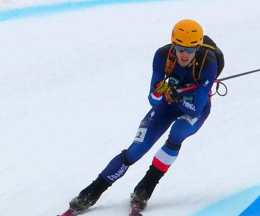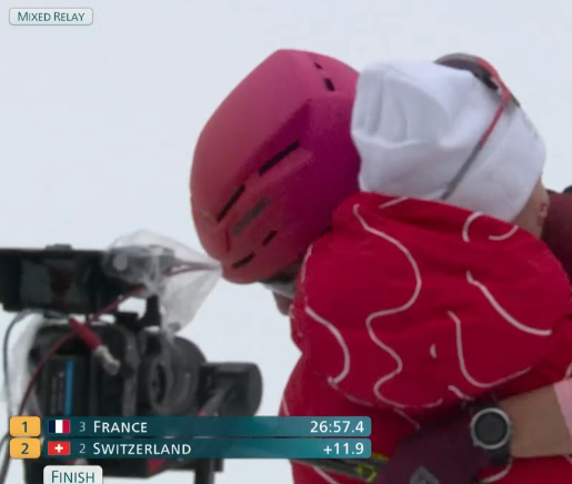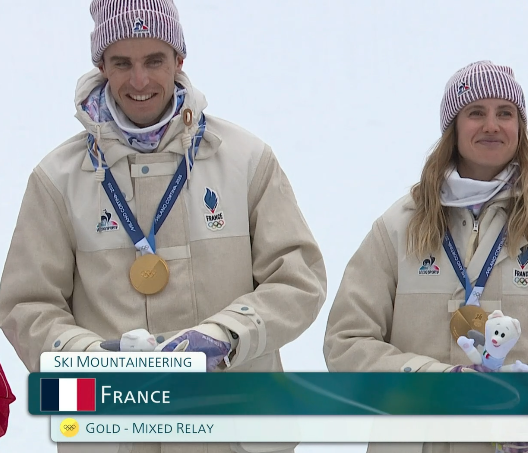 Ski alpinisme la médaille d'or de Emily Harrot et Thibault Anselme au relais mixte pour la France :
