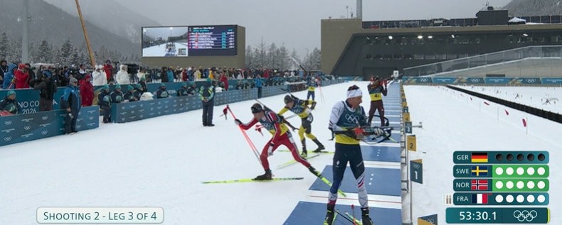 A l'issue de la journée du 8 février 2026 ( 3ème journée olympique ) , la Norvège est en tête au classement des titres olympiques, les USA 2ème, l'Italie 3ème. La France 7ème ex aequo aux côtés de la République Tchèque et de la Suède.
