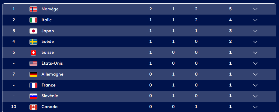 Et pour le coup la Norvège risque de garder cette première place jusqu'à la fin des JO.