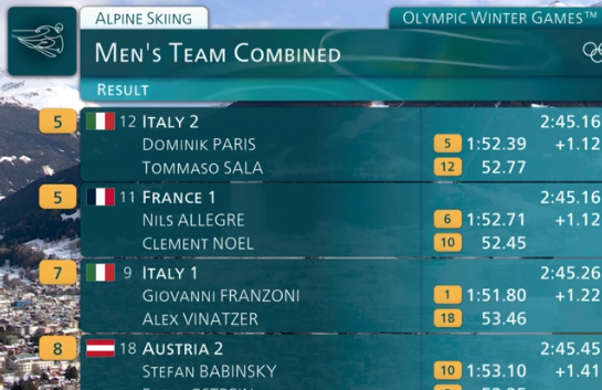 Ski alpin - Combiné par équipe hommes :