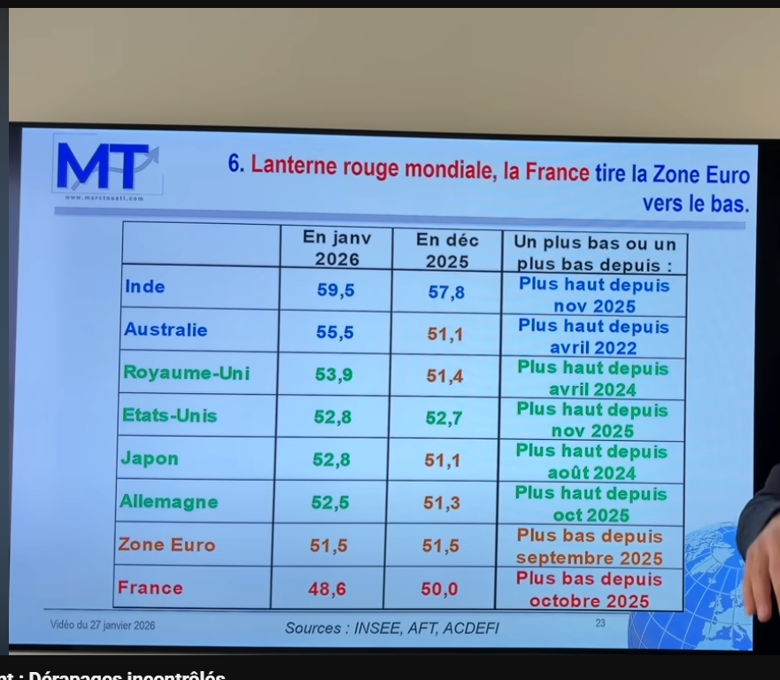 même le Japon qui manque totalement de main d'oeuvre sont à 53 d'indice PMI ( de production en gros)