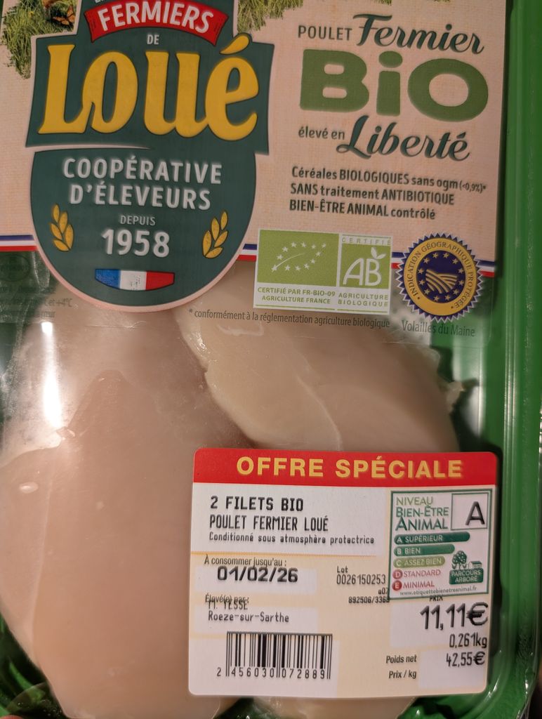 Attention, c'est le prix auquel l'éleveur le vend au groupe LDC donc pour l'abattoir, à ne pas confondre avec le prix en magasin.