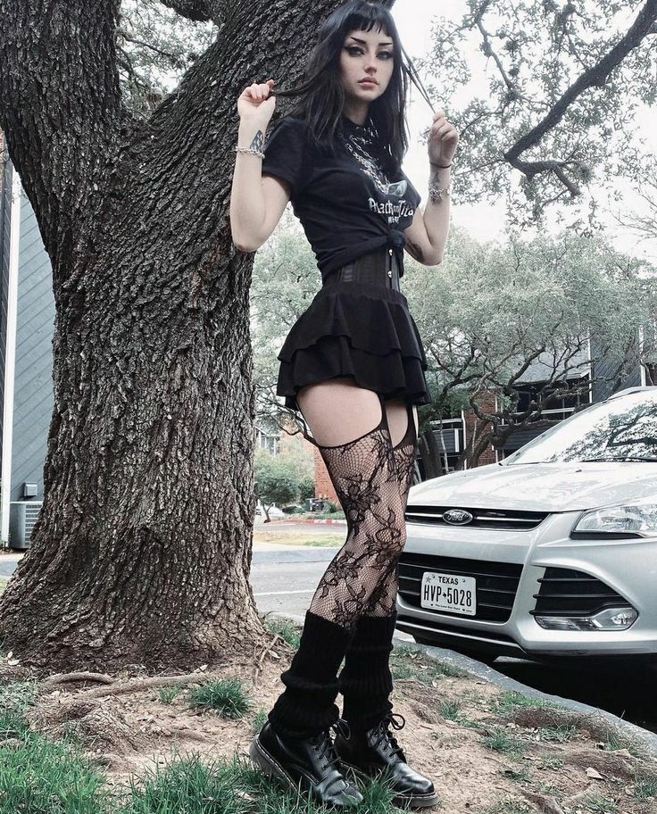 Grosse bottine doc martens, collant noir avec des gros trous + jambe à l'air, on voit même parfois son cul à la meuf et en hiver, et en dessus elles portent un gros pull style sweatshirt de campus Américains