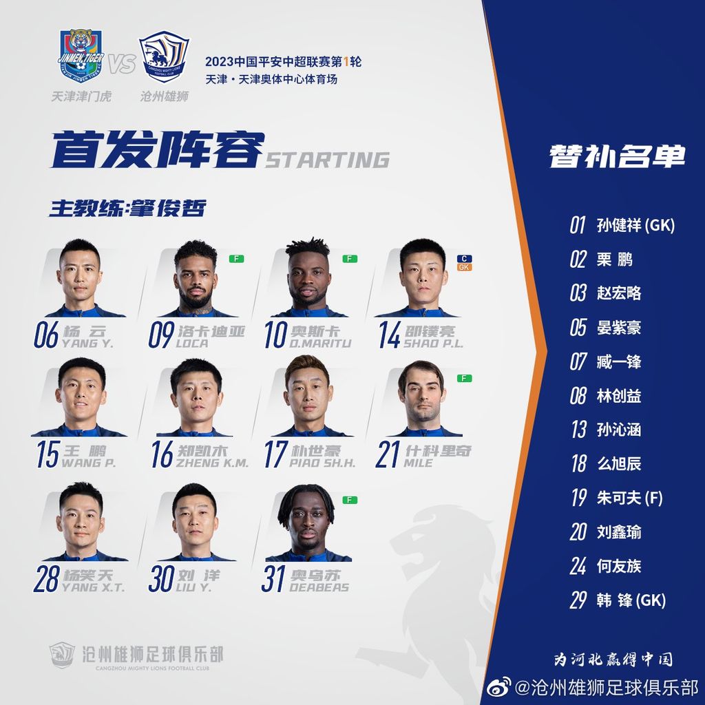 Tianjin Tiger perds 0-1 à la mi temps contre Cangzhou Mighty Lions