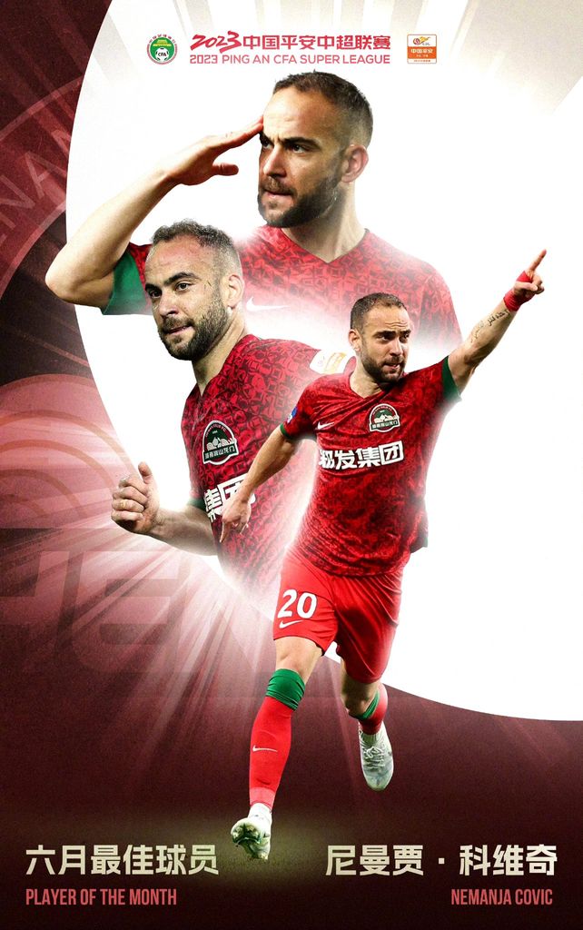 Nemanja Covic attaquant serbe de 32 ans est élu meilleur joueur de Chinese Super League pour le mois de juin 2023 avec 3 matchs pour 5 buts inscrits.