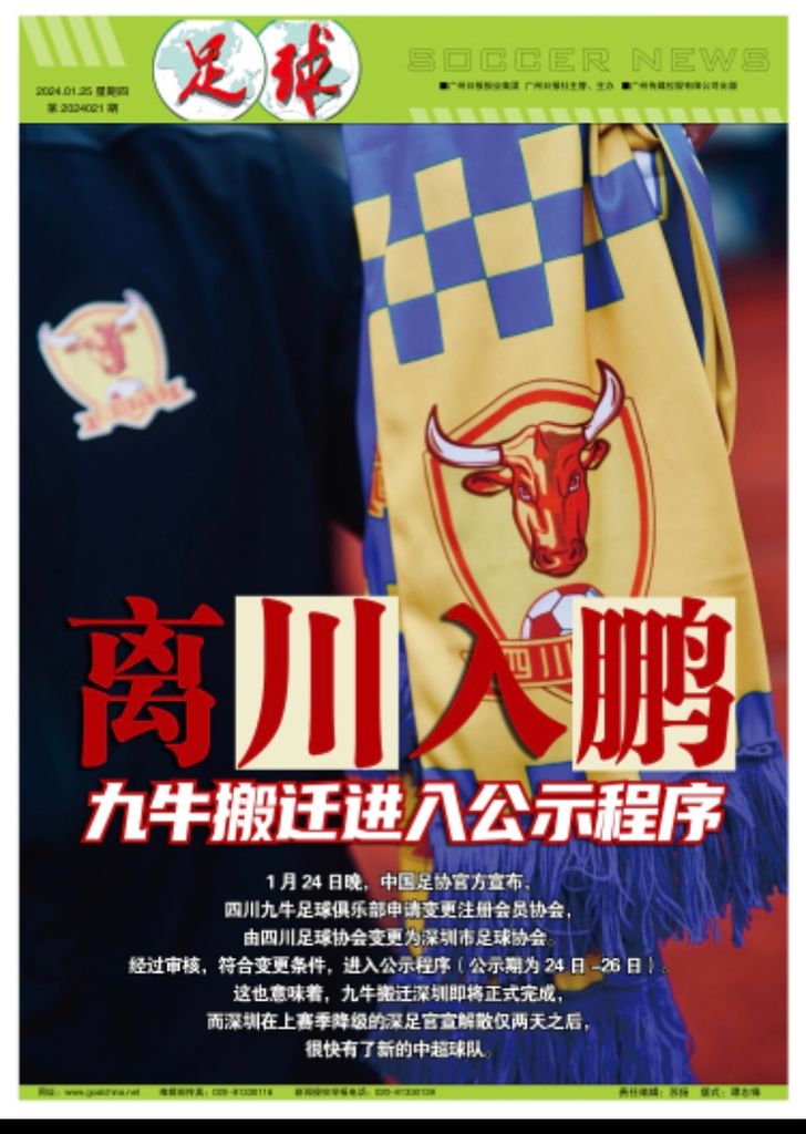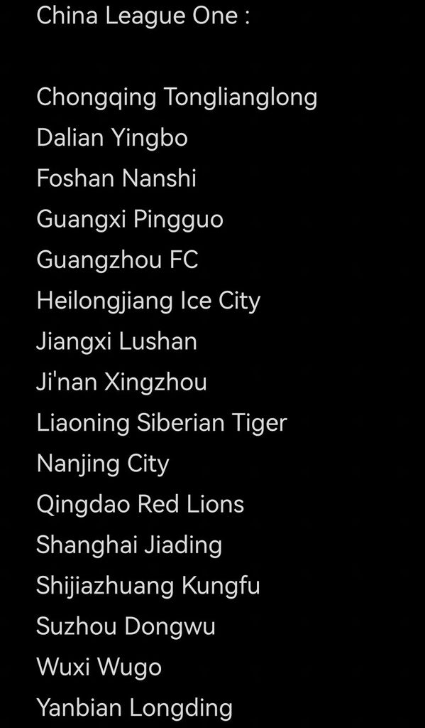 Conséquences : le club du Sichuan Jiuniu qui est promu en Chinese Super League initialement à Chengdu, démménage à Shenzhen, pour permettre à Shenzhen d'avoir toujours un club dans l'élite chinoise. A Chengdu il y a déjà le Chengdu Rongcheng.